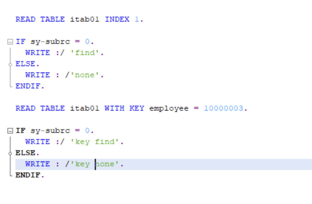 READ TABLE itab01 WITH KEY employee = '1234567'.