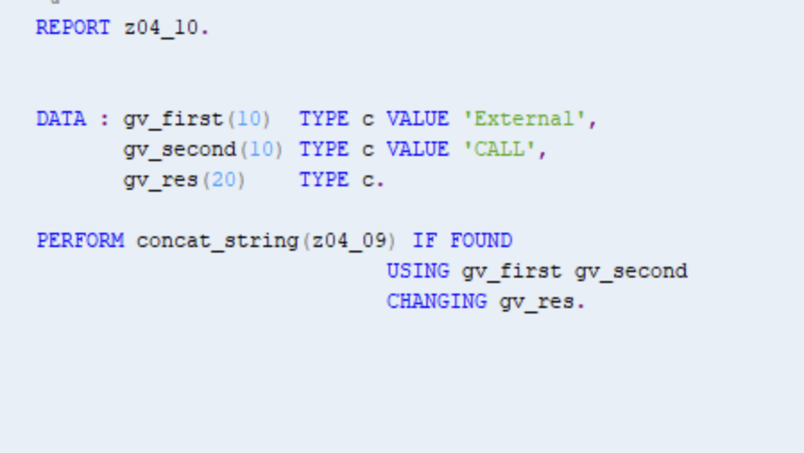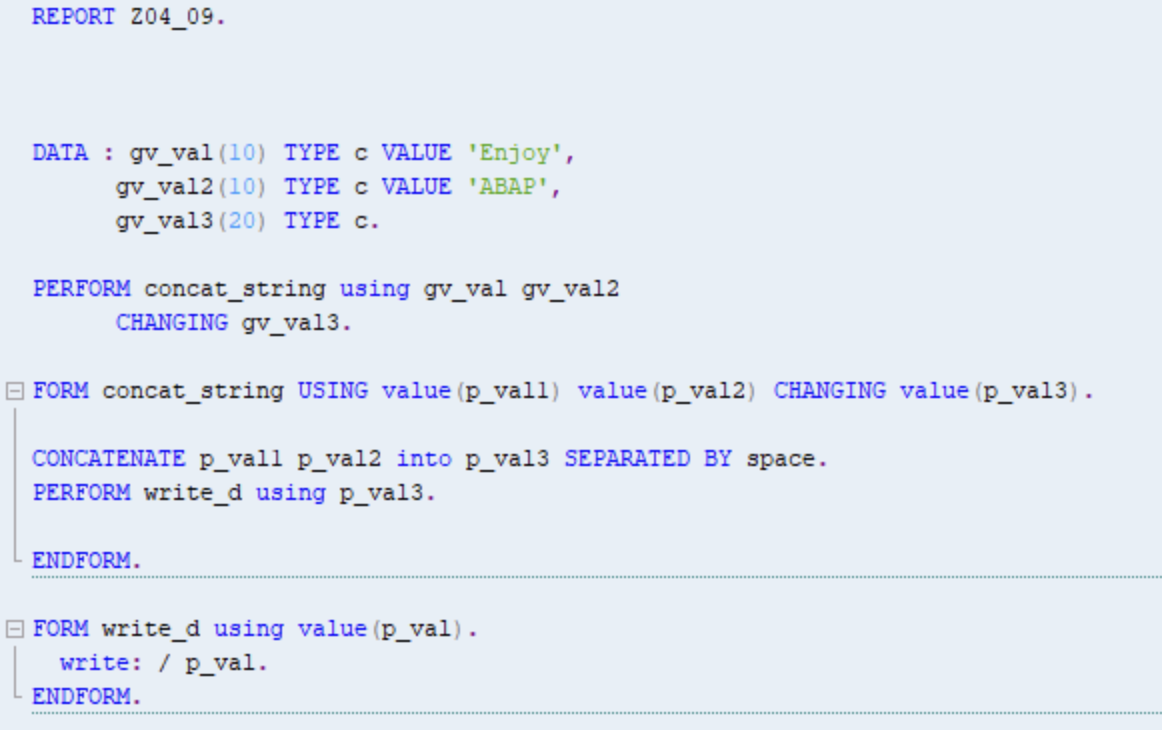 FORM concate_string USING VALUE(p_val1) VALUE(p_val2)
