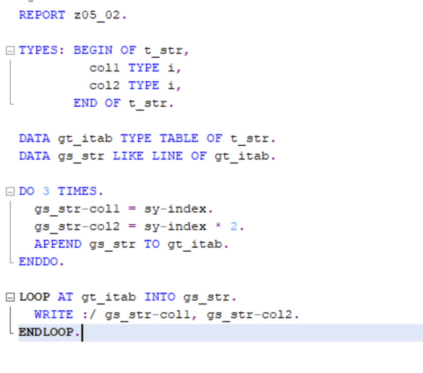 DATA gt_itab LIKE STANDARD TABLE OF gs_type WITH NON-UNIQUE KEY no with header line.