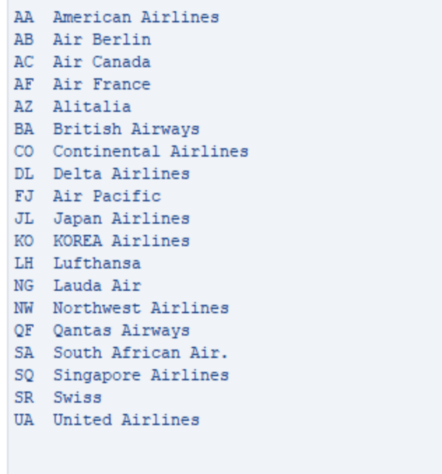 flight-name = 'Korea'. APPEND flight. flight-name = 'Asiana'. APPEND flight. |