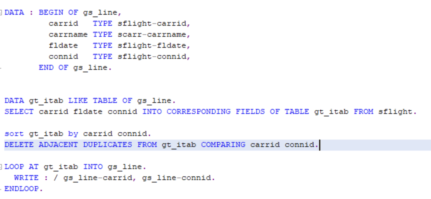 DELETE gt_itab WITH TABLE KEY carrid = 'AA' connid = '1234'.