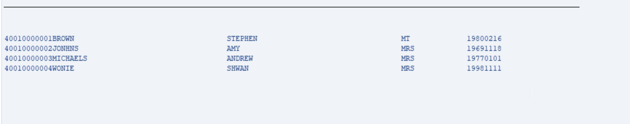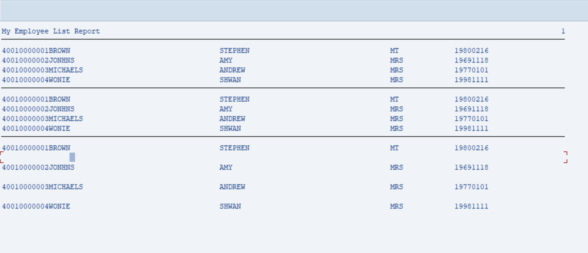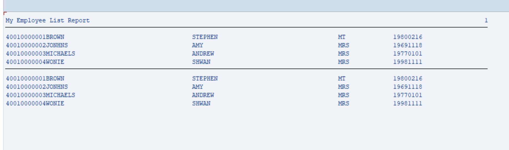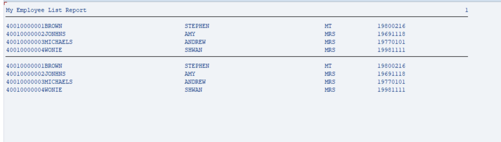 SELECT empno surname forename