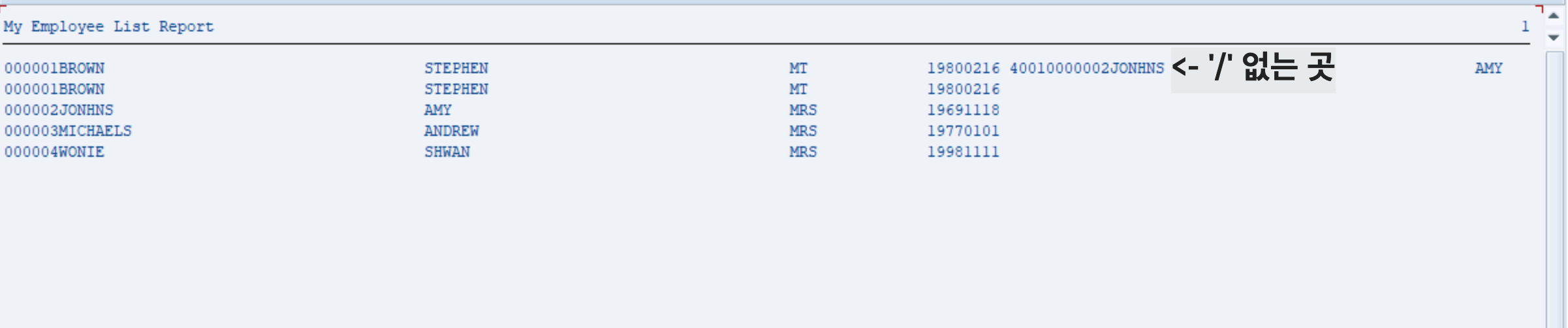 위 두 코드에 '/' 를 둬보자. LINE-SIZE는 532면, 아까봤던 정보들은 '/'가 없으면 쭉 이어져서 나타난다
