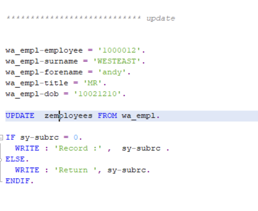 wa_employees-surname = 'EASTMORE'. wa_employees-forename = 'ANDY'.