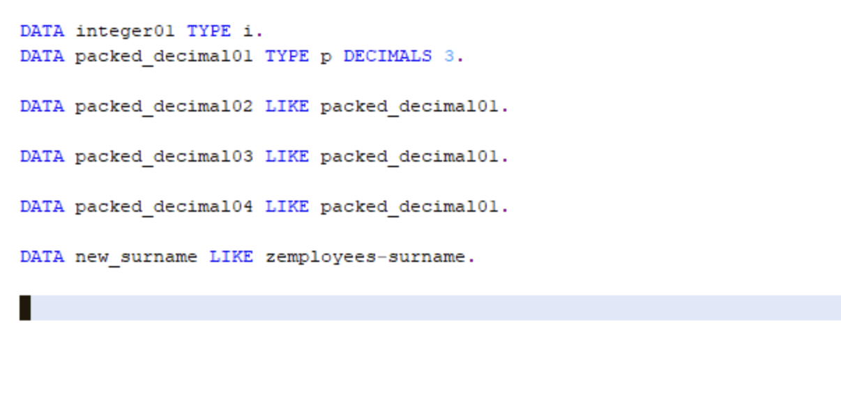 DATA packed_decimal01 TYPE p DECIMALS 2.